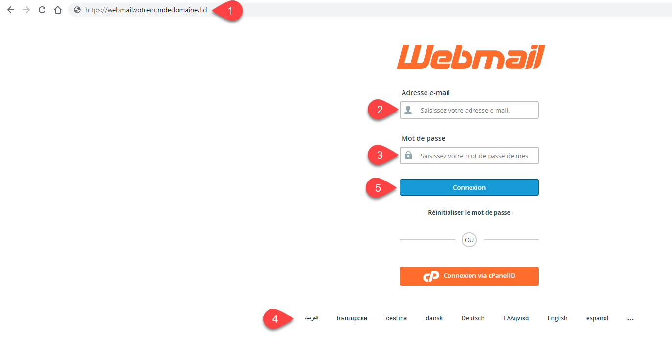 - Taper cette URL dans votre navigateur: http://webmail.votredomaine.tld (remplacer votredomaine.tld par votre nom de domaine)