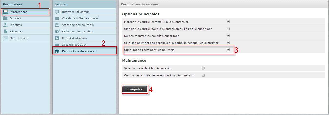 Il est possible que des emails non publicitaires soient classés comme spam. Si vous choisissez de les supprimer directement, vous pourrez perdre certains mails.