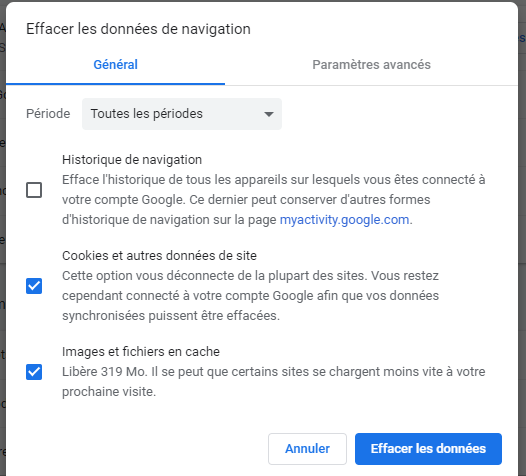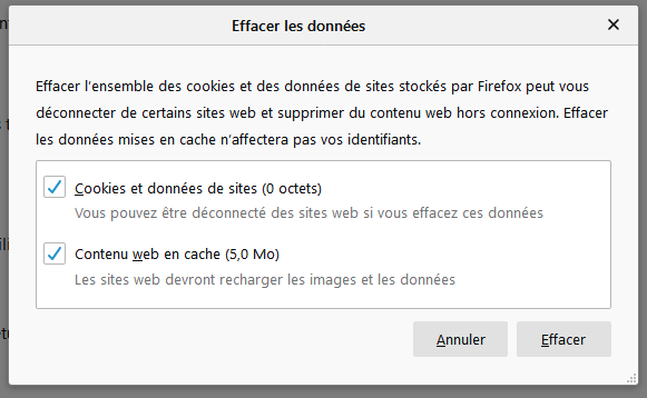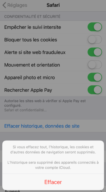 - Dans la fenêtre qui souvre cliquez sur Effacer.