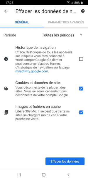 - Sur Données de navigation (en haut) et cliquez sur Choisir les éléments à effacer