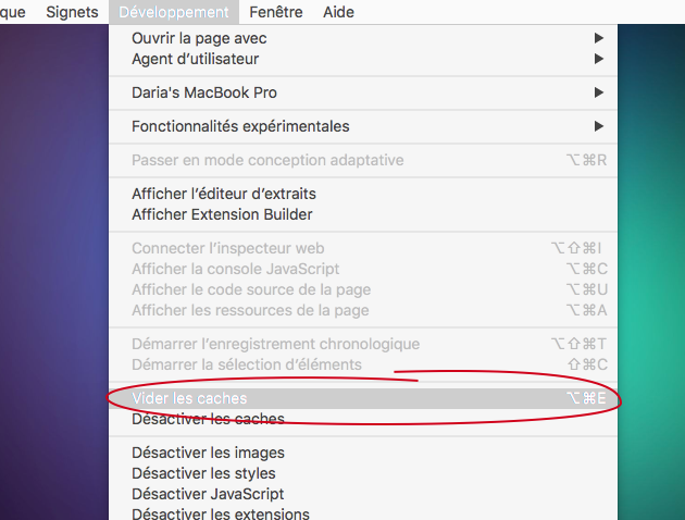 - Activez l'option Afficher le menu Développement dans la barre de menus.