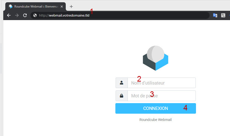 - Taper cette URL dans votre navigateur: http://webmail.votredomaine.tld (remplacer votredomaine.tld par votre nom de domaine)