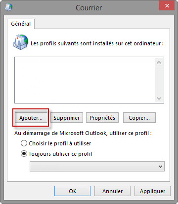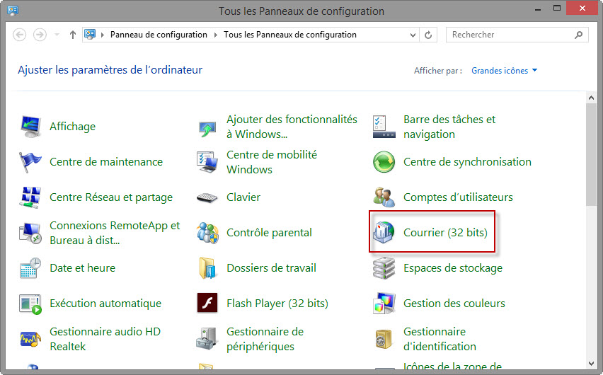 Cliquer le menu Démarrer > Panneau de configuration > Courrier