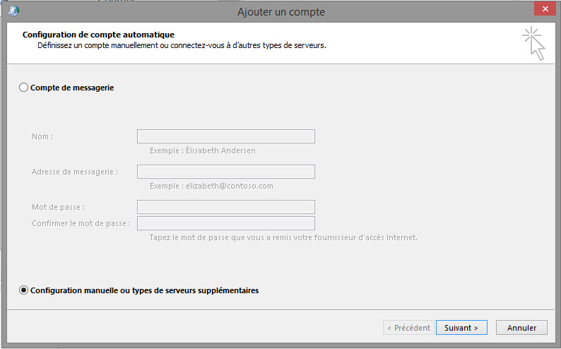 Cliquer Configuration manuelle ou types de serveurs supplémentaires et cliquer Suivant